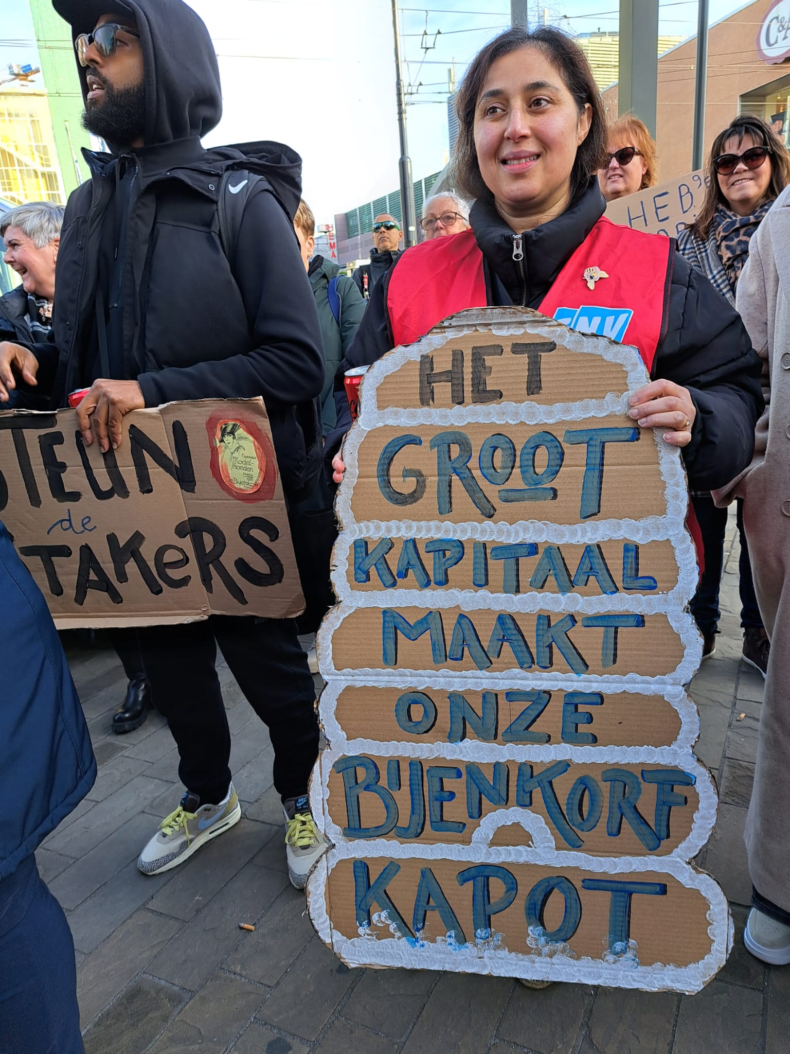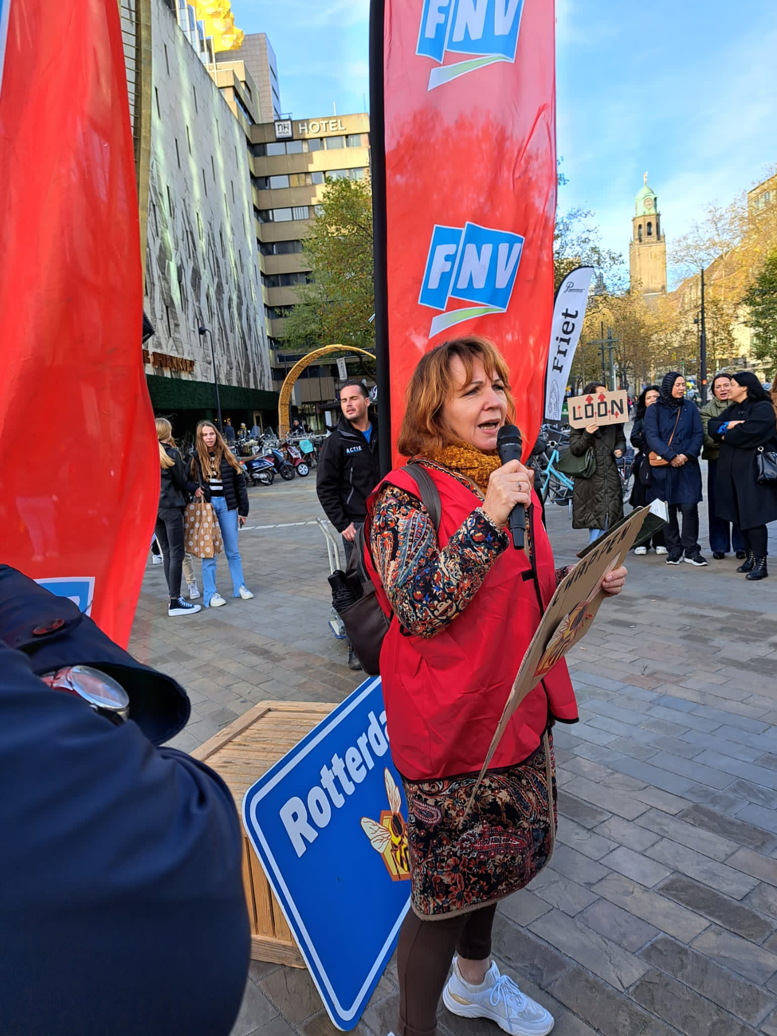 Op steeds meer plekken staken de mensen van de Bijenkorf. Voor het eerst leggen vrijdag ook de winkelmedewerkers in Rotterdam het werk neer. Linda Vermeulen, bestuurder FNV Handel: ‘De medewerkers van de Bijenkorf komen op voor respect en een beter salaris.’