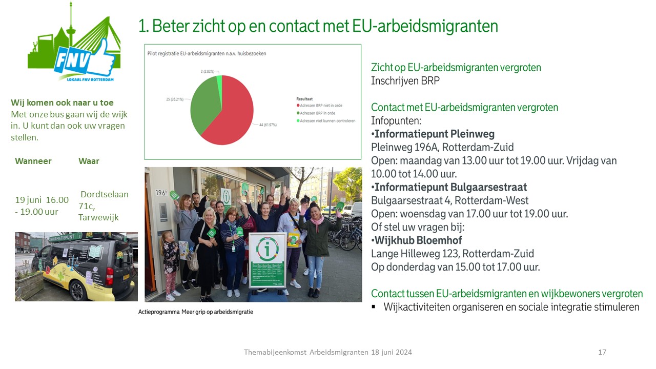 2. Informatiecampagnes - voer gerichte campagnes om arbeidsmigranten te informeren over hun rechten en de ondersteuning die de FNV kan bieden.