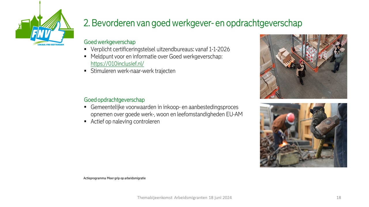 1. Strengere controle en handhaving van arbeidsomstandigheden bij bedrijven die arbeidsmigranten in dienst hebben.