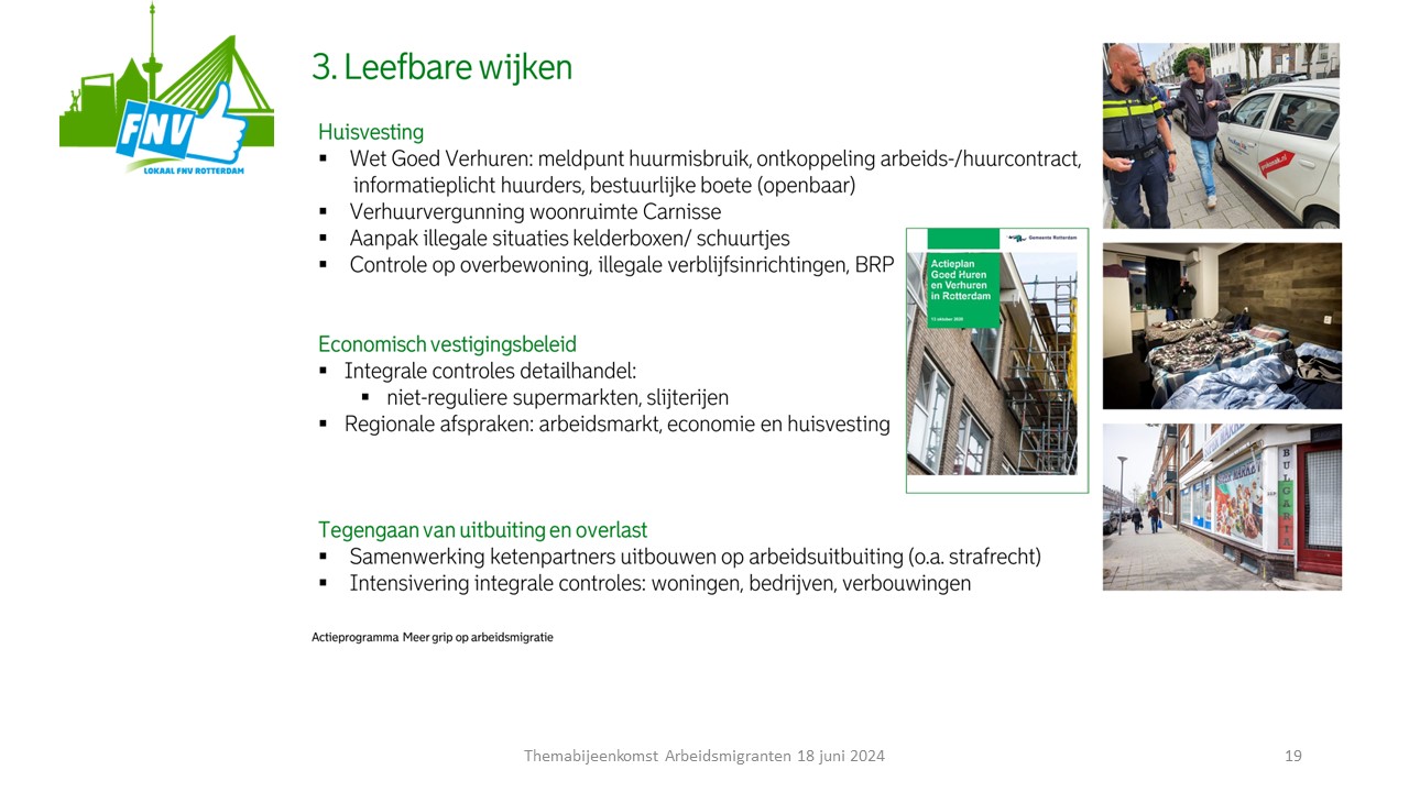3. Woonbeleid - richt het woonbeleid ook op de doelgroep arbeidsmigranten en zorg voor voldoende betaalbare huisvesting.