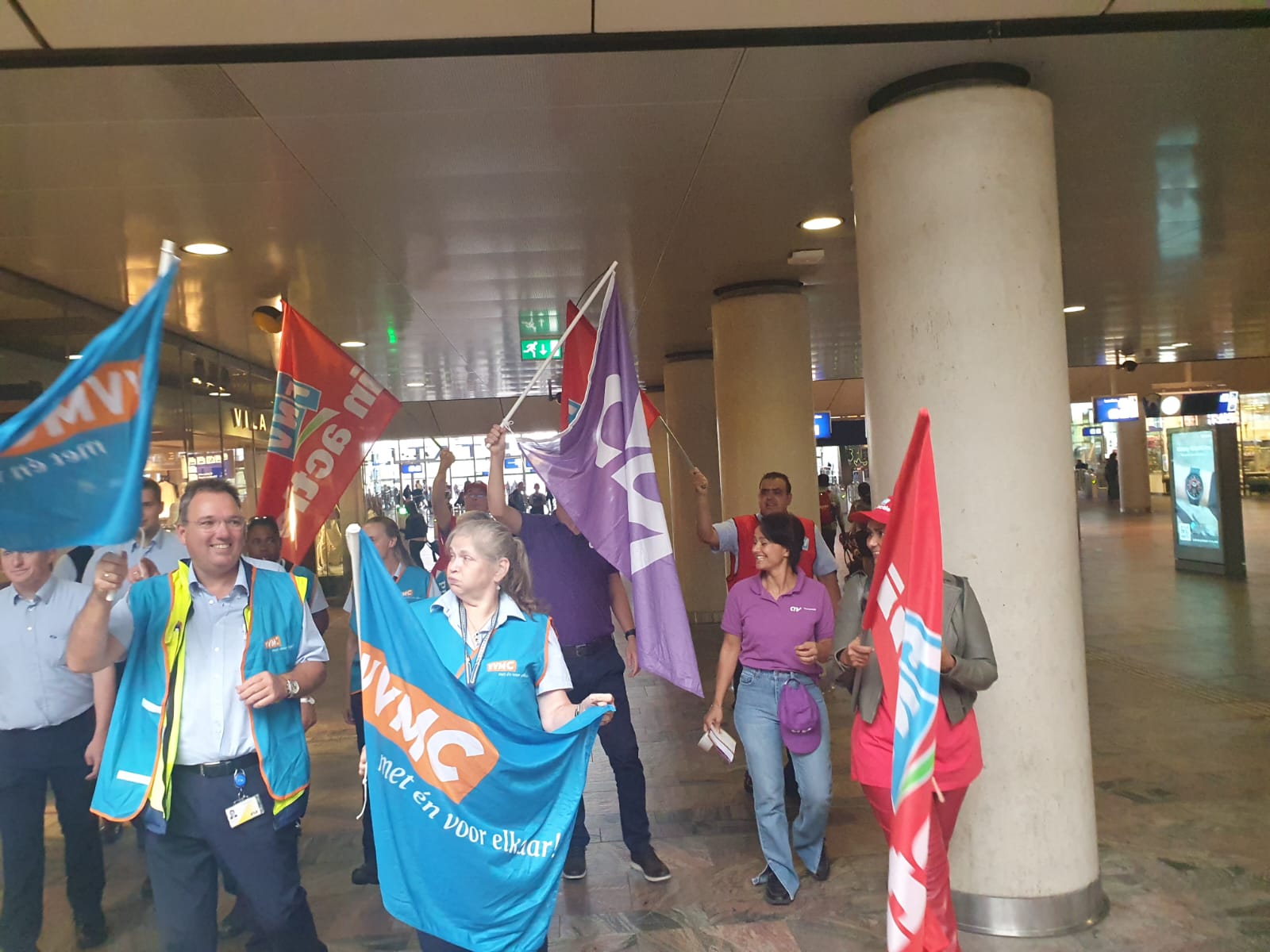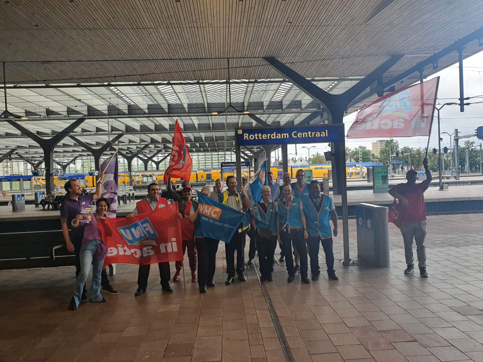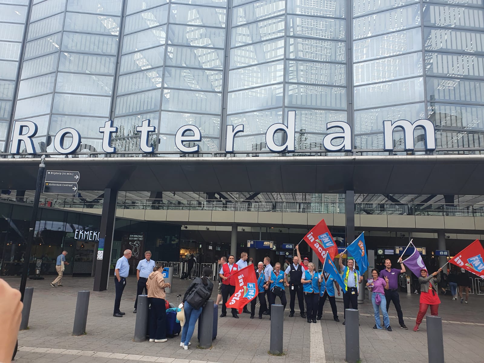 Yasmine en Peter waren bij NS Rotterdam om van uit lokaal FNV Rotterdam steun en solidariteit te betuigen. Met wat lekkers voor de stakers.