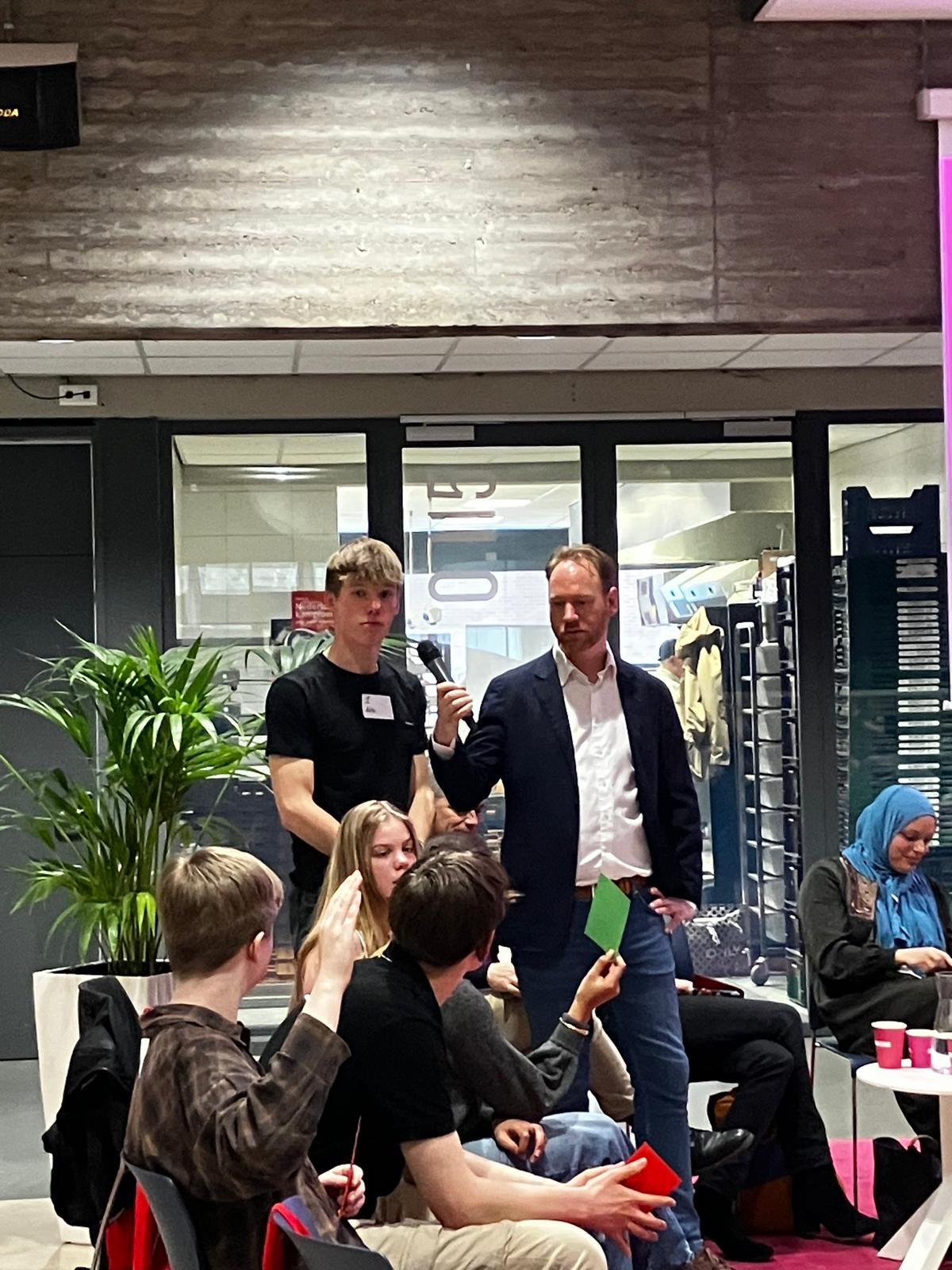 Dit samenzijn met de studenten bood een mooie gelegenheid om in gesprek te gaan over hun rol, gedachten en toekomst in onze stad. Zij hebben het woord gevoerd over verschillende stellingen op basis van het 10-puntenplan.