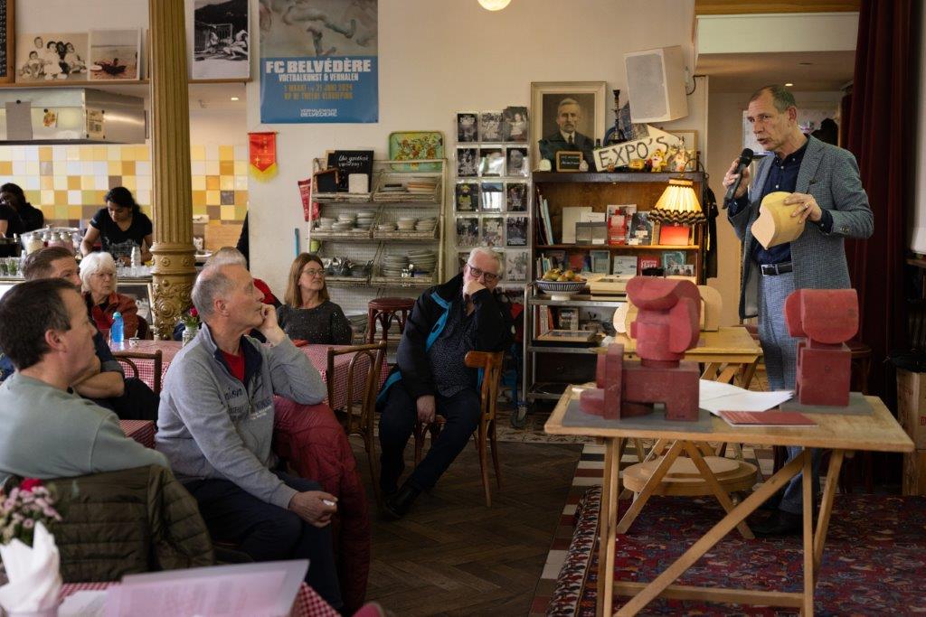 Voorafgaand aan de herdenking konden leden van FNV Havens, andere FNV leden en buurtbewoners in het Verhalenhuis van Hans Abelman horen hoe de ITF is ontstaan en welke rol Edo Fimmen daarin speelde. Maar niet nadat Linda Malherbe behalve een heerlijke snack ook een paar smakelijke anekdotes uit de rijke historie van het verhalenhuis Belvédère had ‘opgedist’. Daarna mocht kunstenaar Ben Zegers aan de hand van bewaard gebleven maquettes vertellen hoe zijn monument indertijd tot stand gekomen is. Het monument kon in eerste instantie niet op de goedkeuring van de buurt rekenen en de officiële plaatsing ervan ging met een heuse, weliswaar kleine, demonstratie in ongelofelijk takkeweer gepaard.