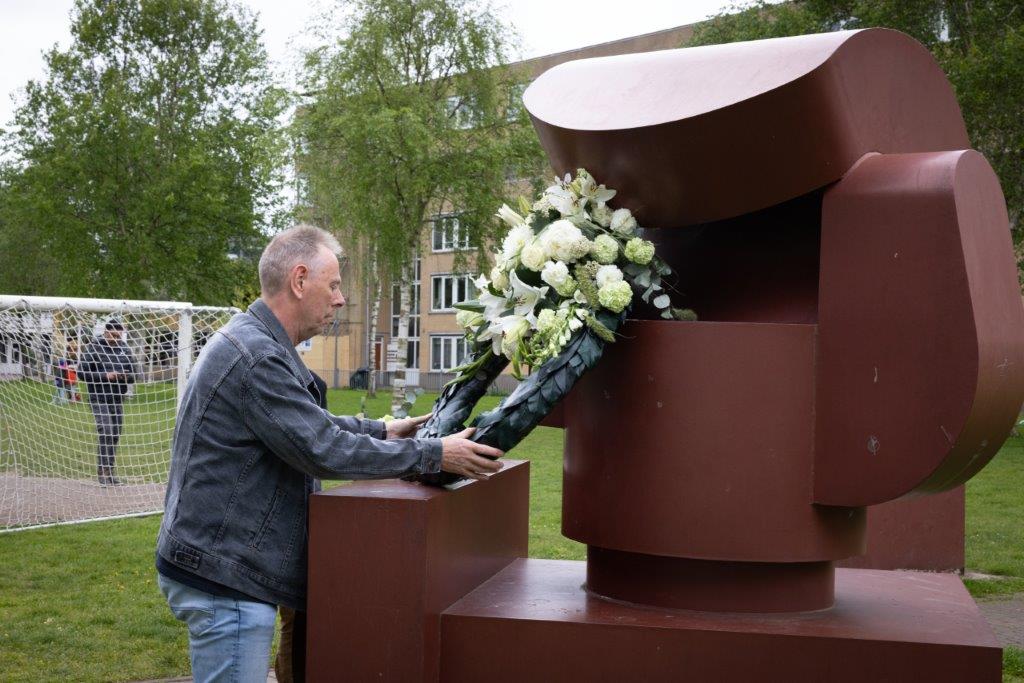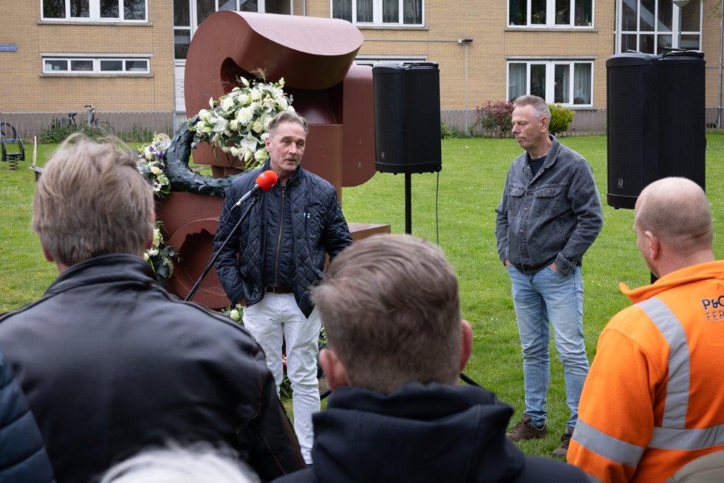 Na alle mooie, wijze en leerzame woorden werd gezamenlijk richting het monument gelopen voor de daadwerkelijke ceremonie: het leggen van kransen en bloemstukken en het houden van twee minuten stilte voor onze collega’s die de afgelopen jaren omgekomen zijn bij de uitoefening van hun werk.