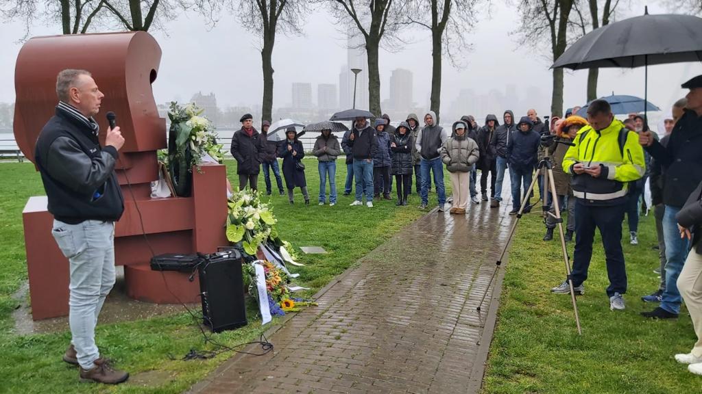 Op Rotterdam Zuid, om precies te zijn op Katendrecht in het Buizenpark, staan twee modern vormgegeven metalen sculpturen die regelmatig tot gefronste wenkbrauwen leiden. Wat stellen ze voor en wat betekenen ze? Zelfs de buurtbewoners weten het vaak niet. Wel zien ze elk jaar, op 28 april, een groepje mensen daar bloemen en kransen neerleggen.